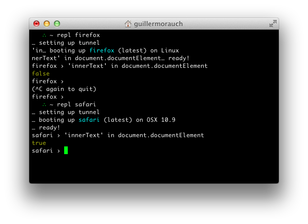 Very cool, this is especially useful on OS X or Linux where you don't have easy access to IE. SauceLabs is an incredible service, but for cases like these it is often overkill to fire up a full browser session to quickly check something in the console. I look forward to using this!